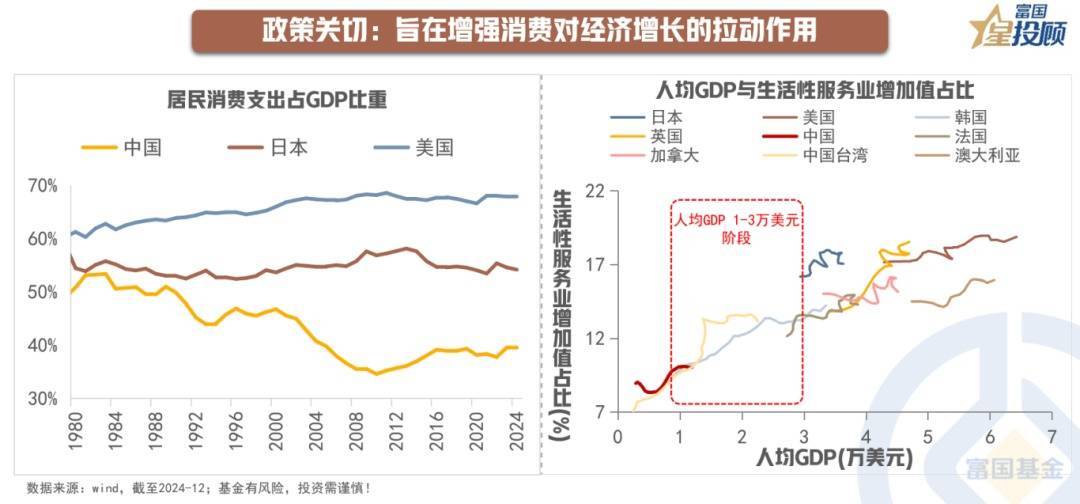 结构上,国内服务消费修复空间较大,且随着人均GDP抬升会有更大增长空间。参考海外经验,主要经济体人均GDP1-3万美元,服务消费在总消费占比随之抬升,年均上行幅度约是0.3-0.6个百分点。向后看,随着“投资于人”政策加力,有望助力服务消费空间打开。