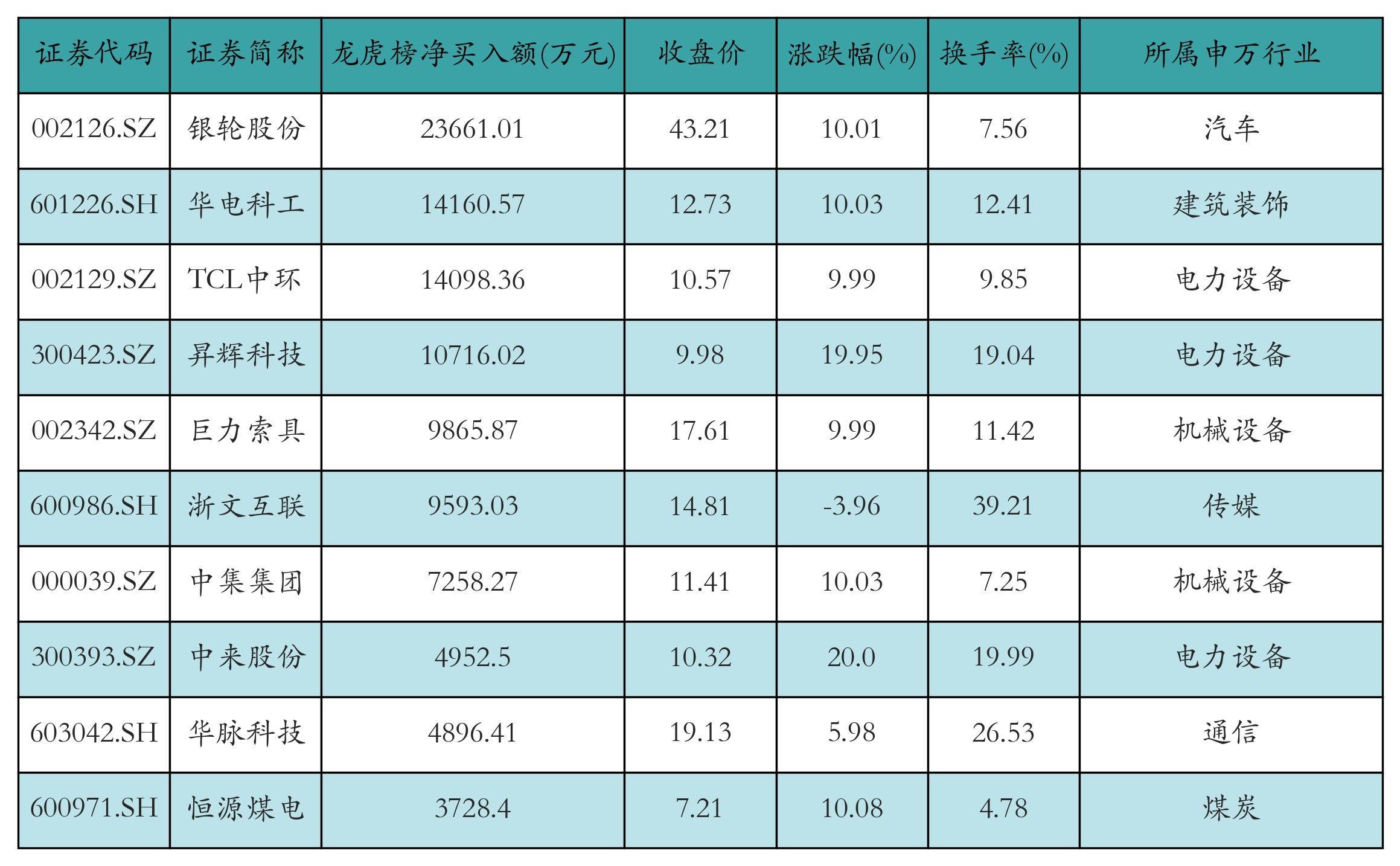 昨日龙虎榜营业部净买入额前10详情见下表: