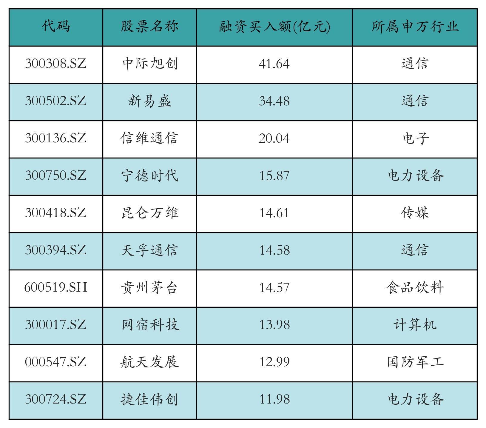 两市共有3482只个股有融资资金买入,其中中际旭创、新易盛、信维通信排名前三,买入金额分别41.64亿元、34.48亿元、20.04亿元。融资买入额前10个股详情见下表: