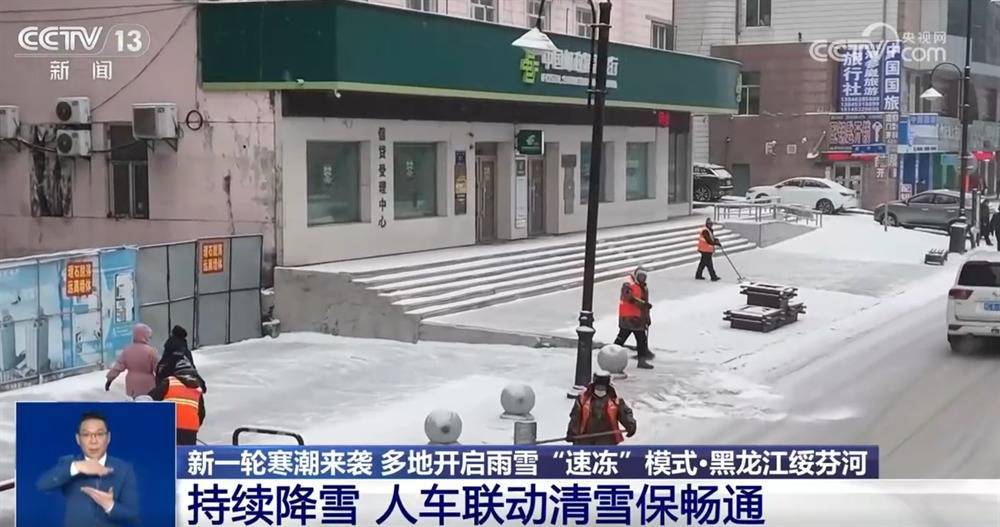 r在黑龙江七台河市,气象部门发布寒潮蓝色预警,预计未来48小时最低气温降至零下25℃左右,对此,全市各部门迅速启动清冰雪应急预案,统筹各方力量开展清雪保畅作业。