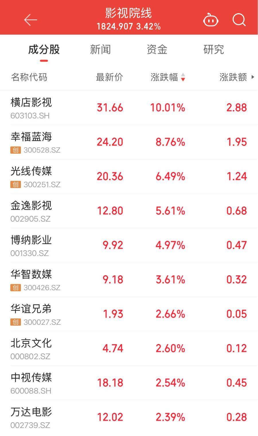 2月5日,影视院线板块逆市崛起,成为A股市场亮点。截至10时45分,影视院线指数(881274.TI)涨幅超3%,成分股全线飘红,其中横店影视走出6天5板强势行情,幸福蓝海、博纳影业、金逸影视、中国电影等个股同步跟涨。