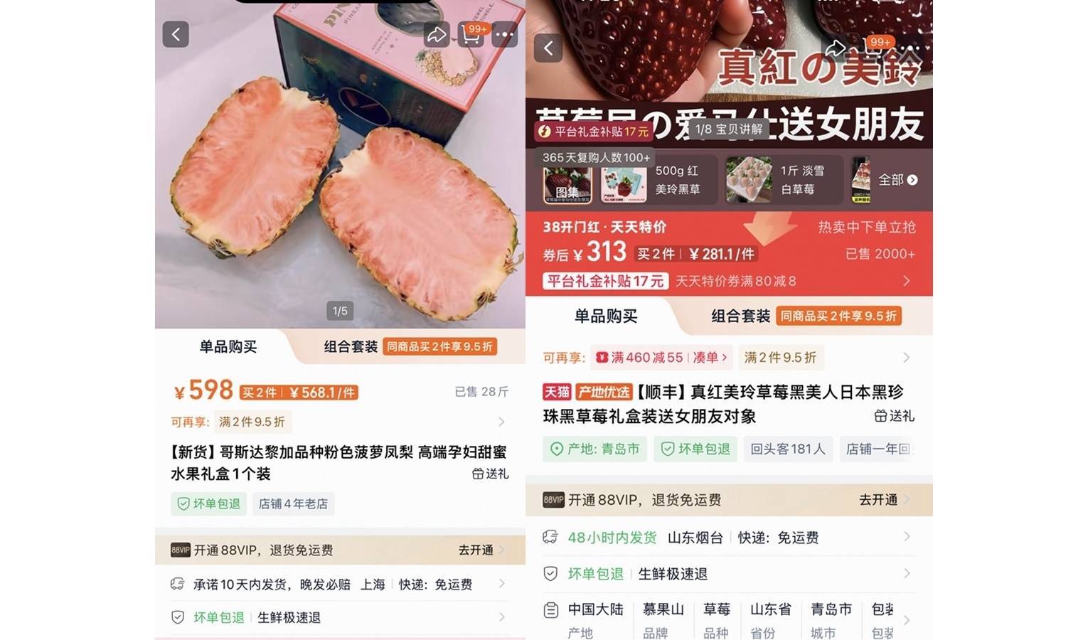 从生产端来看,特殊品种的培育需投入大量时间与科研成本。比如粉菠萝,由哥斯达黎加新鲜戴尔蒙特公司历经17年研发,通过技术手段抑制番茄红素转化,独特的培育过程也成为其高价的重要原因之一。